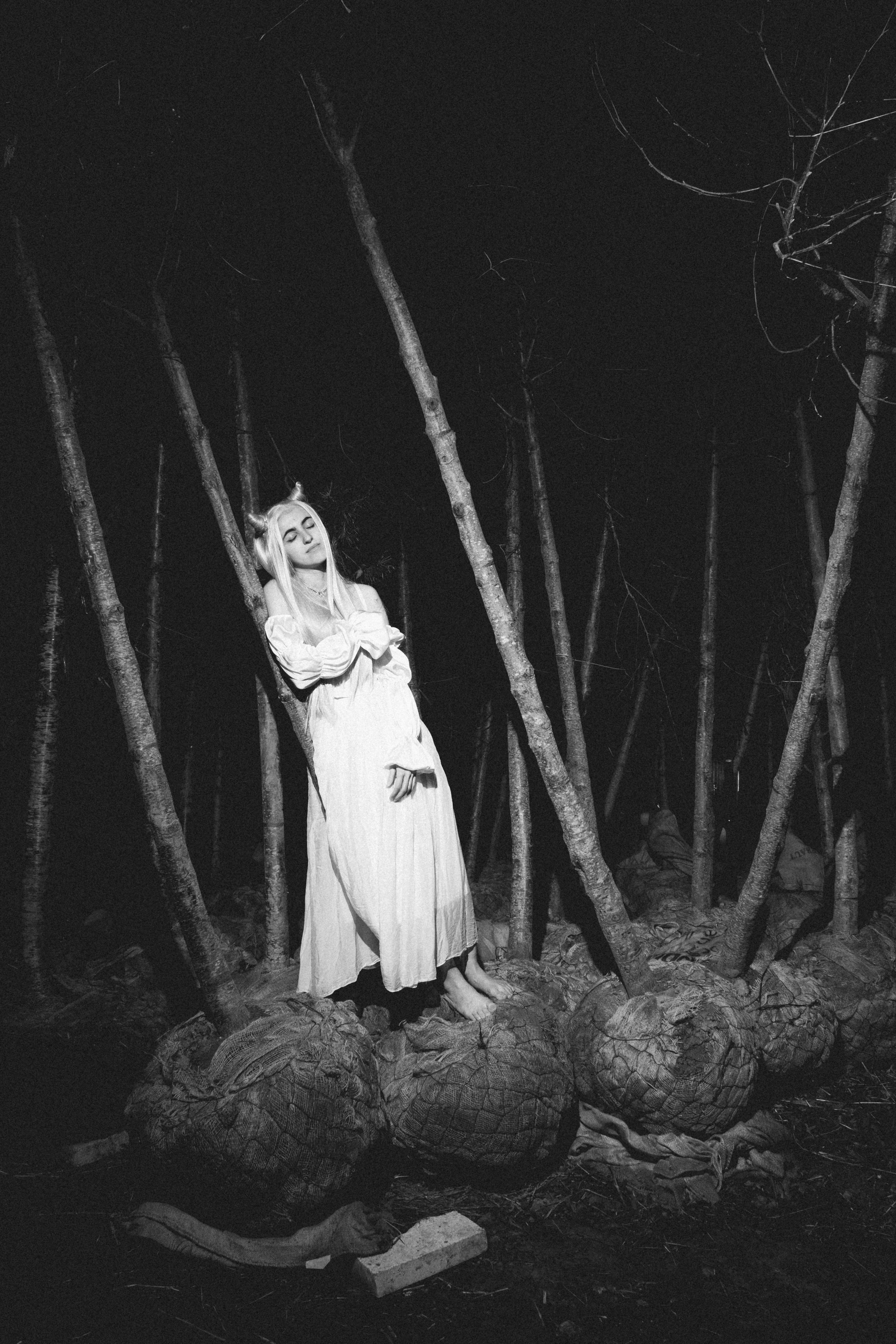 J’ai voulu réinterpréter l’univers de Pumpkin Space lors d’une nuit de pleine lune en forêt, où la douceur bascule vers le mauvais rêve.